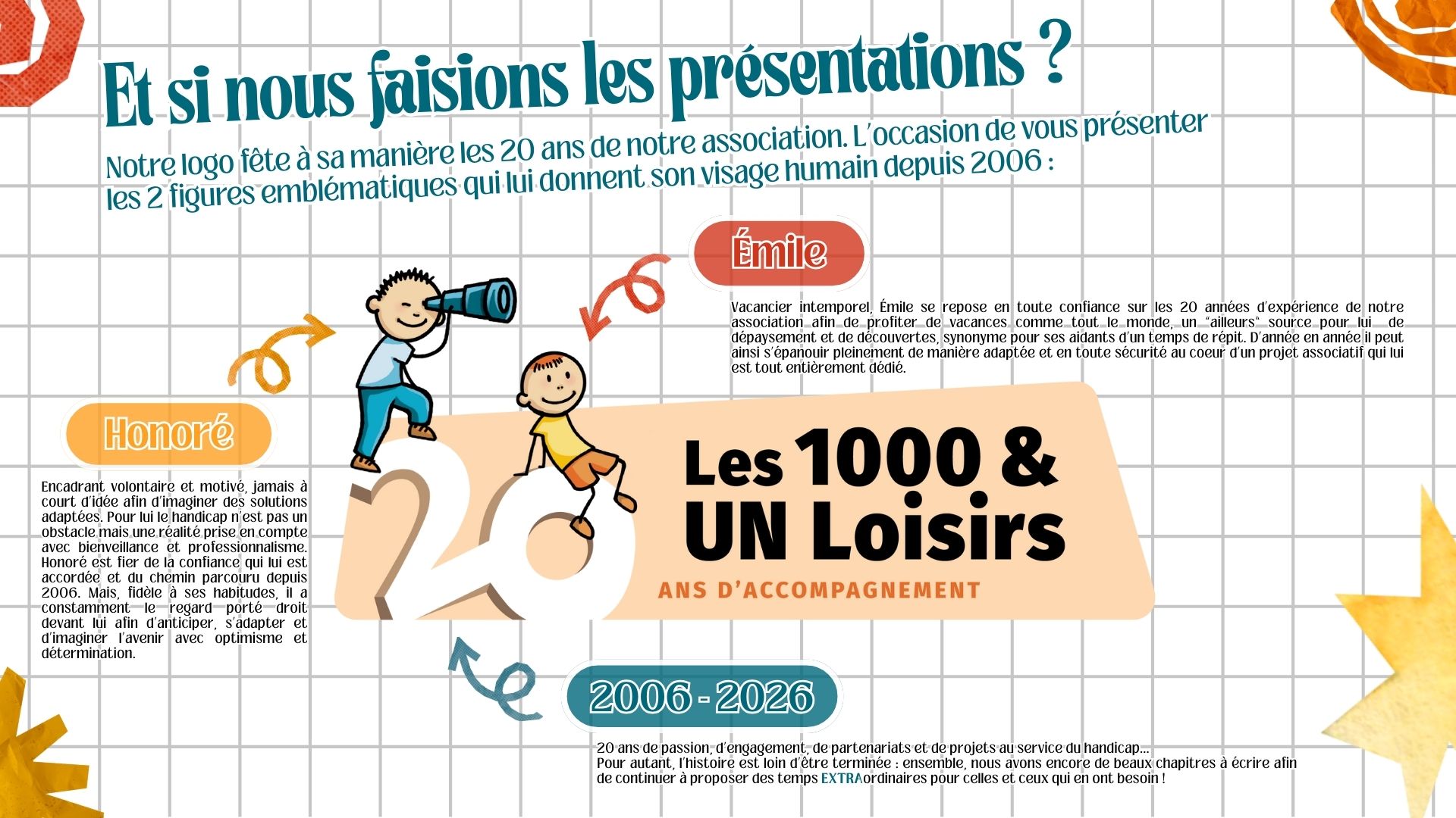 Quant aux deux personnages de notre logo, revisité pour nos 20 ans… Ils font partie intégrante de l’aventure depuis 2006 et même s’ils ont évolué en 2015, leur visage vous est forcément familier. Mais saviez-vous qu’ils ont un prénom et une histoire ?? Très heureux de profiter de l’occasion pour vous présenter Émile et Honoré !